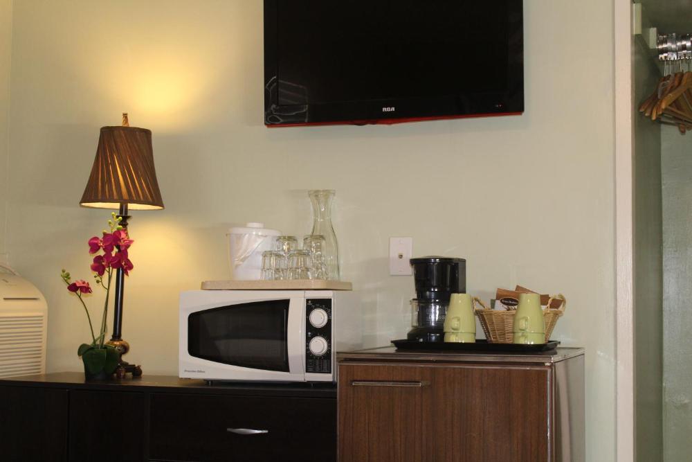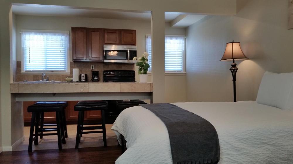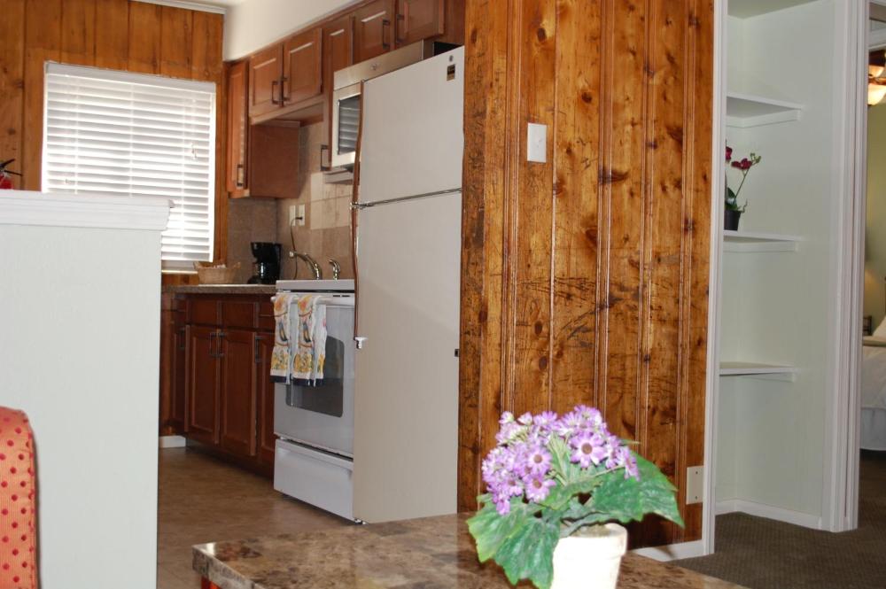 The photo collection of El Rancho Motel reflects its no-frills approach: clean, straightforward rooms with simple furnishings, practical kitchenettes, and smart TVs.